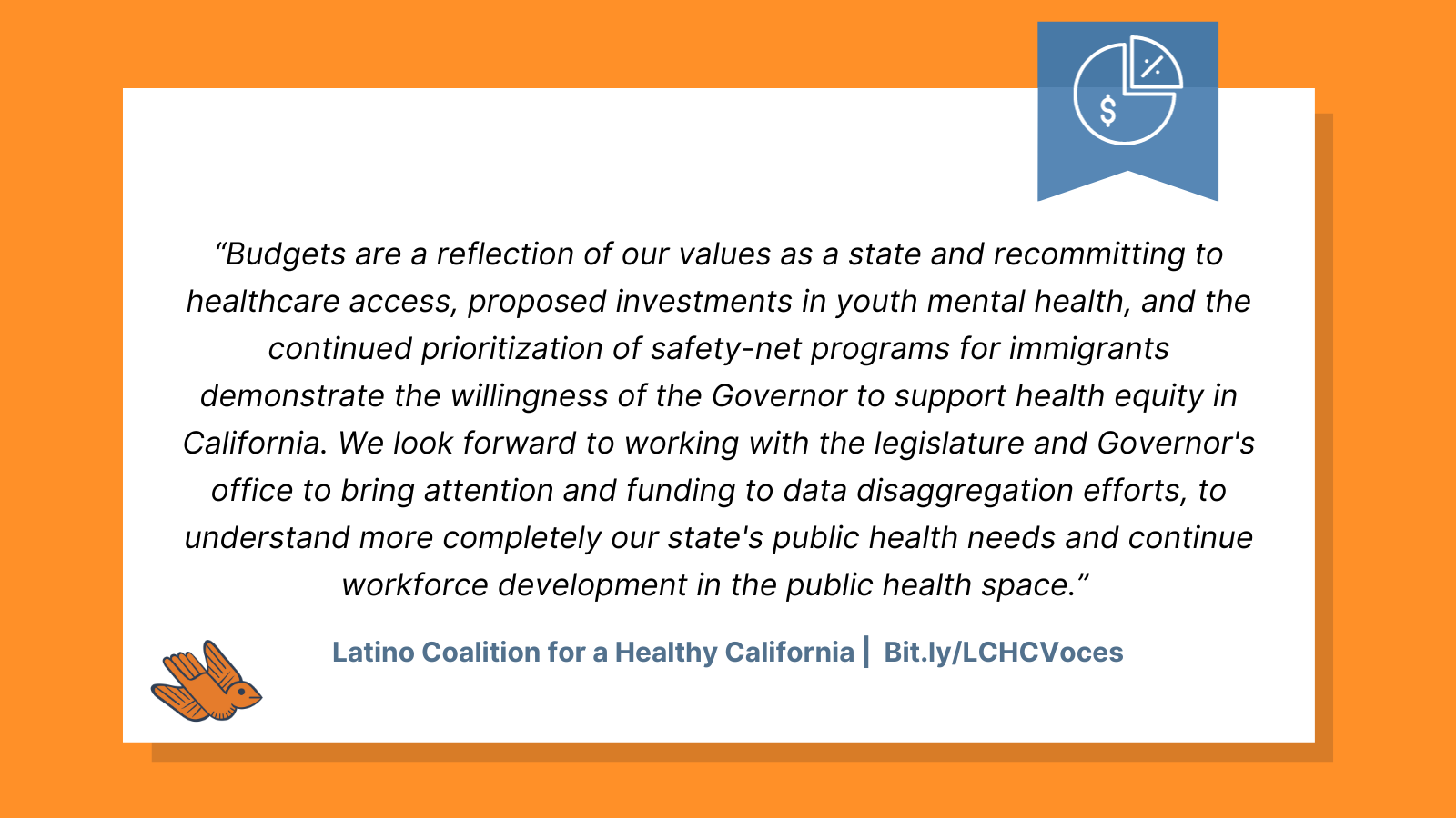 The Latino Coalition for a Healthy California (LCHC) applauds Governor Newsom’s continued commitment to protect investments in health coverage for all, encourages the administration to support equity solutions to advance public health
