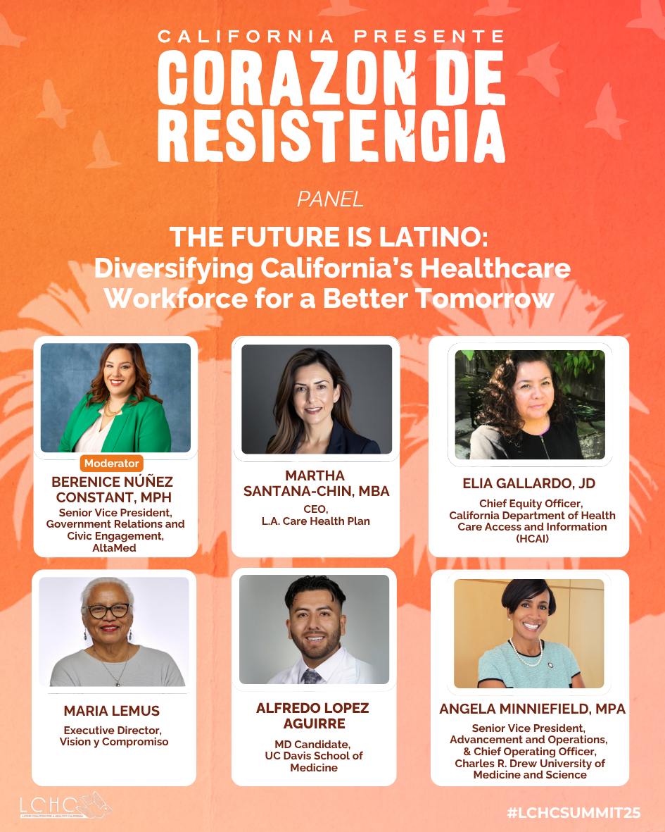 The Latino Coalition for a Healthy California (LCHC) invites you to attend LCHC’s 2025 Health Policy Summit. Our summit’s theme this year, California Presente: Corazón de Resistencia (California Present: Heart of Resistance), centers hope, power, and our responsibility to defend all Californians.