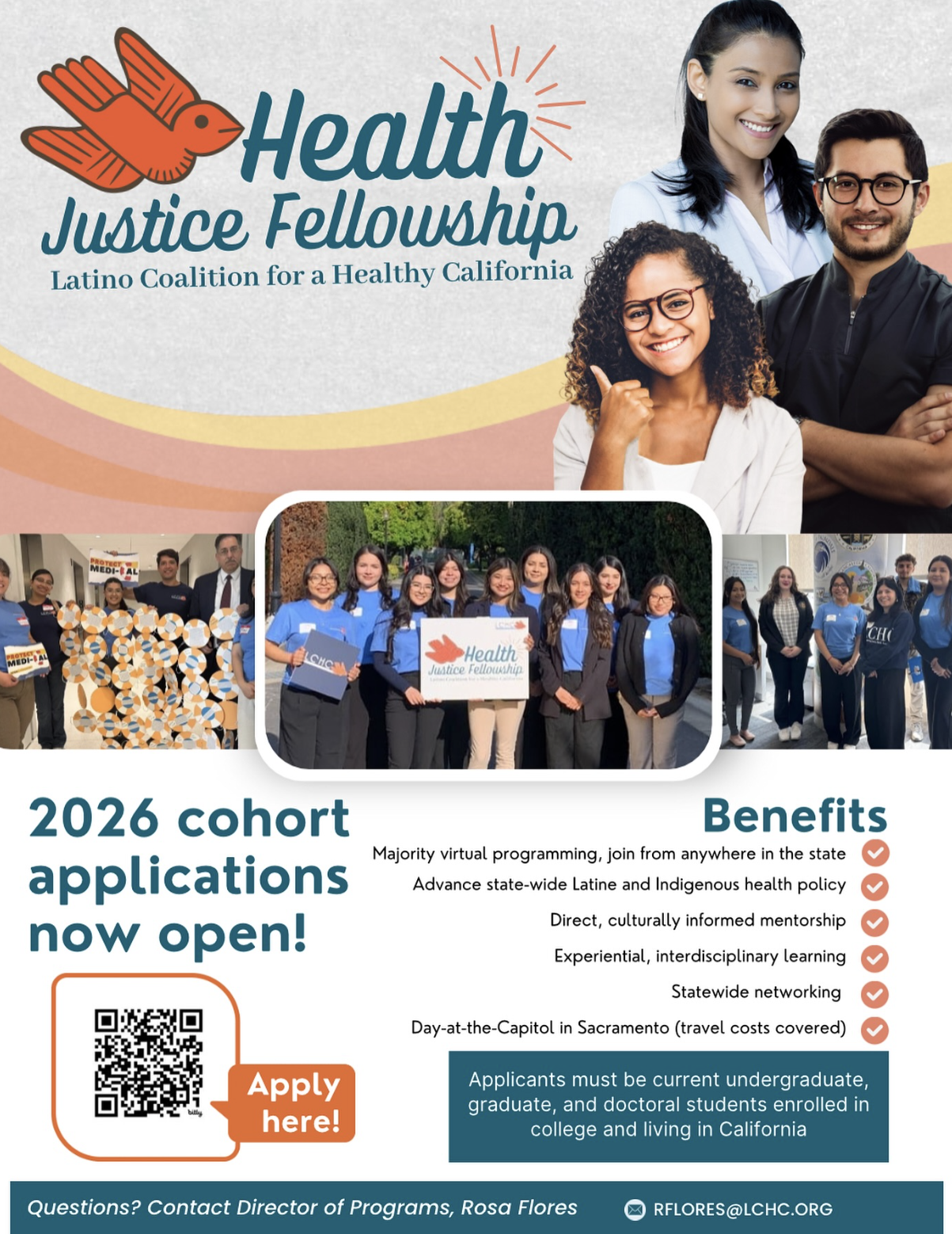 About the fellowship: LCHC is committed to inspiring and training the next generation of health advocates and policy experts. Through our LCHC Health Justice Fellowship Program, we seek undergraduate, graduate students and recent graduates to work with one of LCHC’s departments. This opportunity is uniquely designed to lift up young professionals interested in the healthcare & public health policy arenas, especially those from Latinx, BIPOC, LGBTQIA+, immigrant, and first-generation backgrounds.
